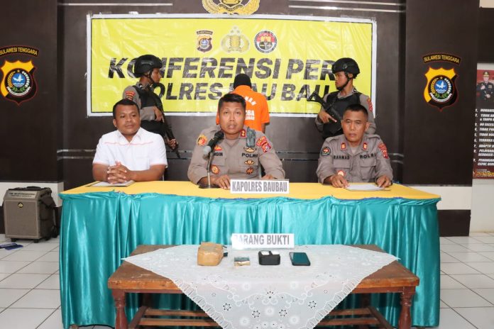 Baubau, Penaaktual.id – Kepolisian Resort (Polres) Baubau berhasil membekuk seorang pengedar narkotika jenis sabu-sabu berinisial SL (31 tahun) di Kota Baubau Sulawesi Tenggara (Sultra).