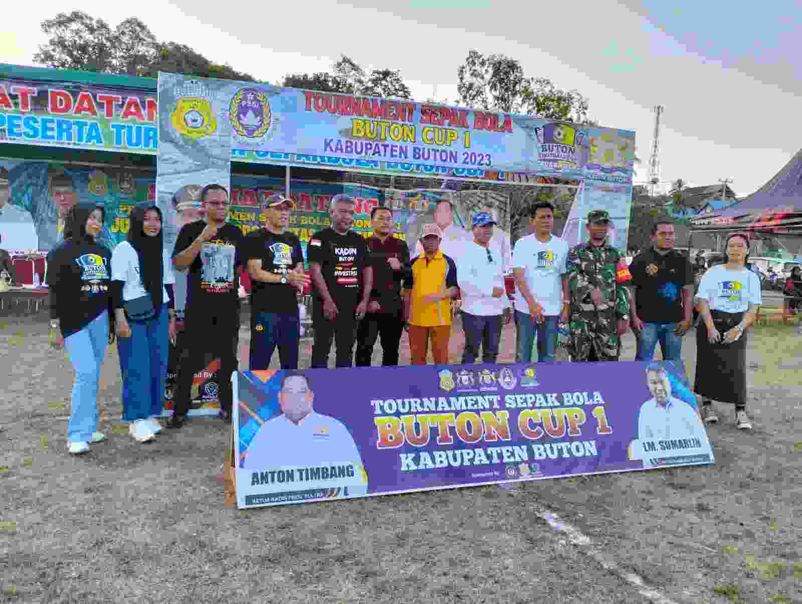 Pembukaan turnamen itu ditandai dengan penendangan bola secara bersama-sama oleh Pj Bupati Buton yang diwakili oleh Plt Kepala Dinas dan Olahraga (Dispora) Laode Rizky Nugraha dan Ketua Kamar Dagang dan Industri (Kadin) Buton Laode Muhammad Sumarlin B.
