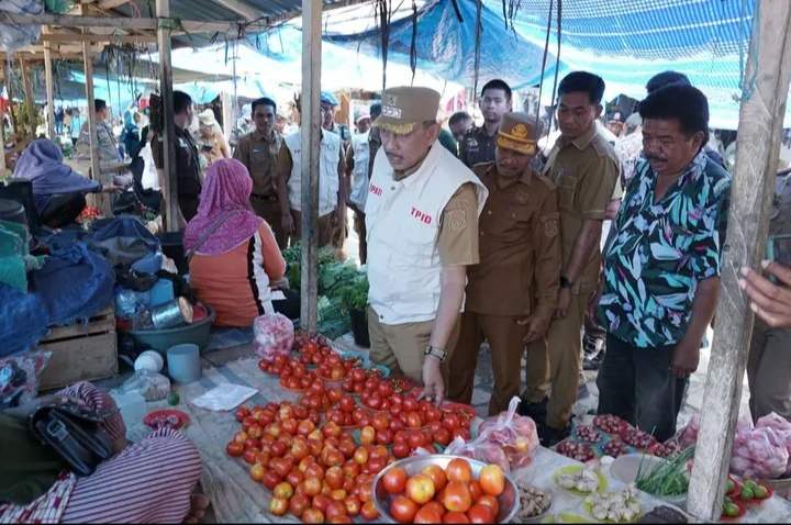 Untuk memastikan stok dan harga kebutuhan pokok di pasar tradisional Bupati turun langsung dan berinteraksi dengan para pedagang. Selain itu Bupati menyempatkan diri membeli beberapa jualan para pedagang seperti Tomat, Sayur, bawang merah, ikan dan komiditi lainnya.
